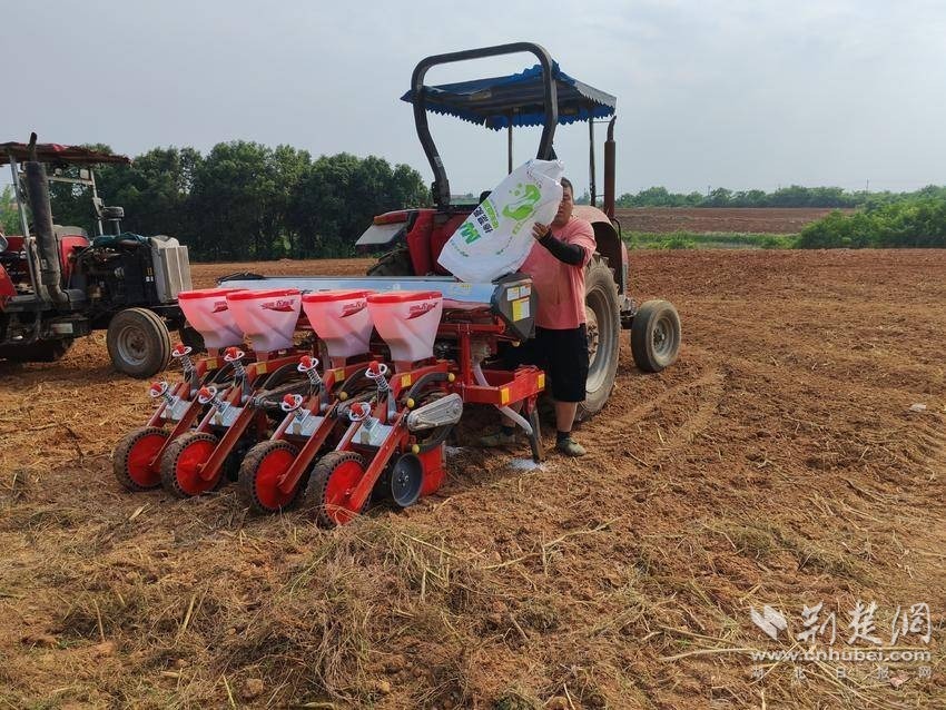 荊楚網(wǎng)(湖北日?qǐng)?bào)網(wǎng))訊(通訊員陳紅霞)夏收忙完,夏播接茬。7月18號(hào),在孝感市孝南區(qū)楊店鎮(zhèn)剛強(qiáng)種植專業(yè)合作社的一處大豆、玉米種植示范田里,裝有“智慧大腦”的兩臺(tái)種肥同播精量播種機(jī)正在田間來(lái)回穿梭,隨著播種機(jī)向前移動(dòng),身后種子和化肥以及滴灌管一同被淺埋在黃土地里,播種、施肥、覆土一氣呵成。