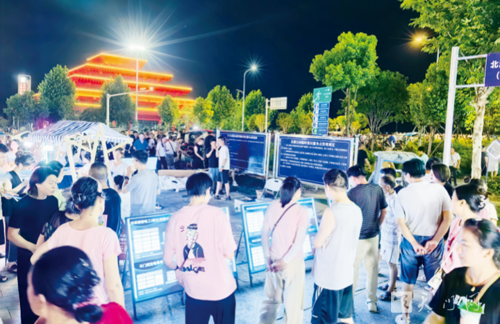 7月19日晚,在天門(mén)市北湖公園,“星光夜市”招聘會(huì)吸引了不少市民參加。此次招聘會(huì)由天門(mén)市人社局、市總工會(huì)主辦,市勞動(dòng)就業(yè)管理局承辦,天門(mén)武住電裝有限公司、鴻碩精密電工(湖北)有限公司等10余家企業(yè)到場(chǎng)招聘。據(jù)介紹,“星光夜市”招聘會(huì)還將在萬(wàn)達(dá)廣場(chǎng)、沃爾瑪、陸羽廣場(chǎng)、城南體育公園等地舉辦,為廣大求職者和用人企業(yè)搭建便捷高效的供需對(duì)接服務(wù)平臺(tái)。