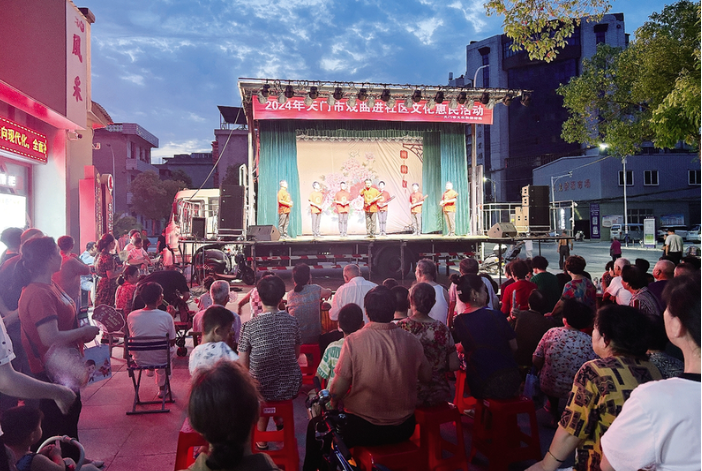 近日,在天門市竟陵街道東方社區(qū),市花鼓戲劇院舉行戲曲進(jìn)社區(qū)文化惠民活動。為豐富群眾精神文化生活,天門市花鼓戲劇院今年將舉行100場送戲進(jìn)鄉(xiāng)鎮(zhèn)、進(jìn)社區(qū)(村)、進(jìn)景區(qū)、進(jìn)企業(yè)、進(jìn)校園活動。