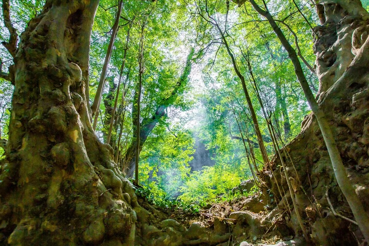 綠色干溝青檀林是湖北省較大的青檀樹群落,成型大樹三十多棵,樹齡500—1200年,列為國家保護(hù)樹種。