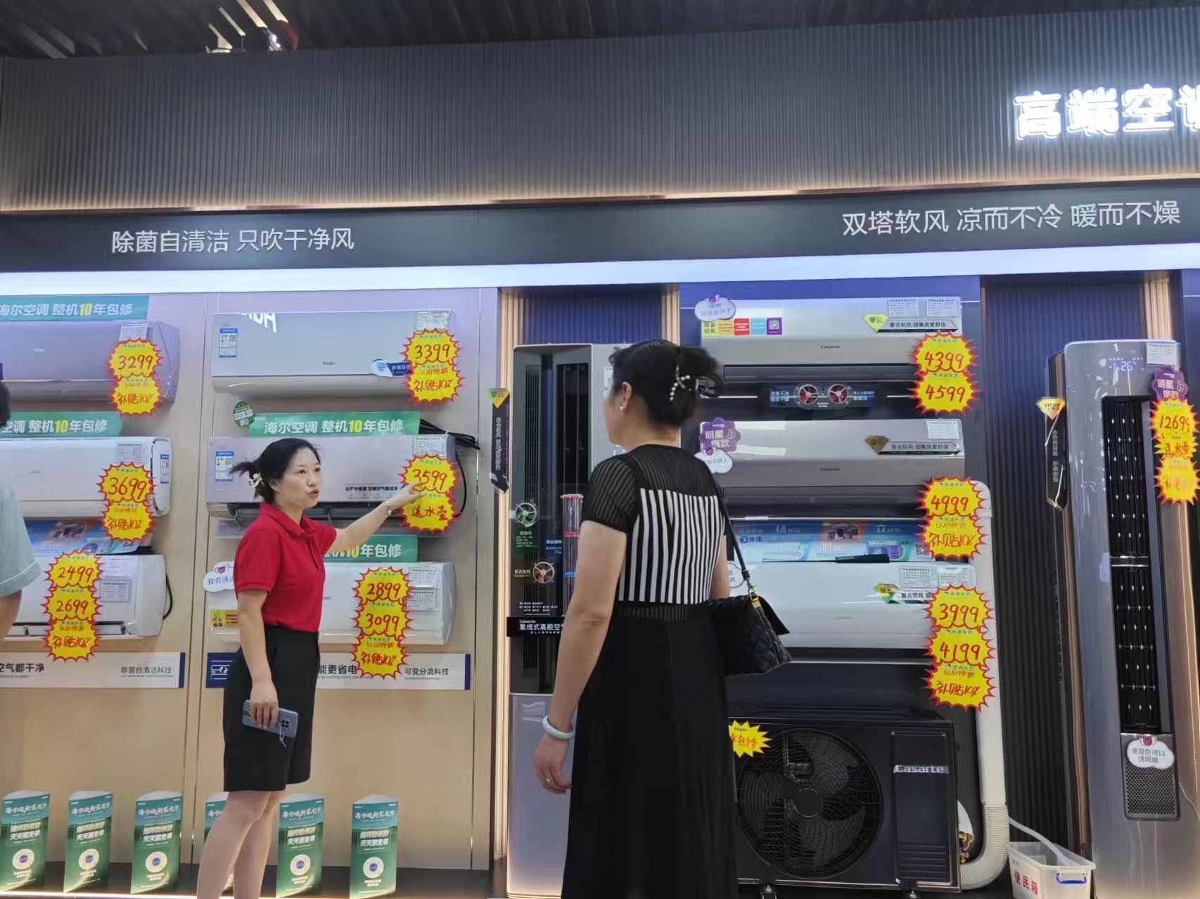 “原價1900元的空調(diào)只花了1500元就拿下!”“用了十多年的舊空調(diào)還抵了450元。”“新款冰箱功能更多,價格也不貴。”“新?lián)Q的空調(diào)更省電了!”