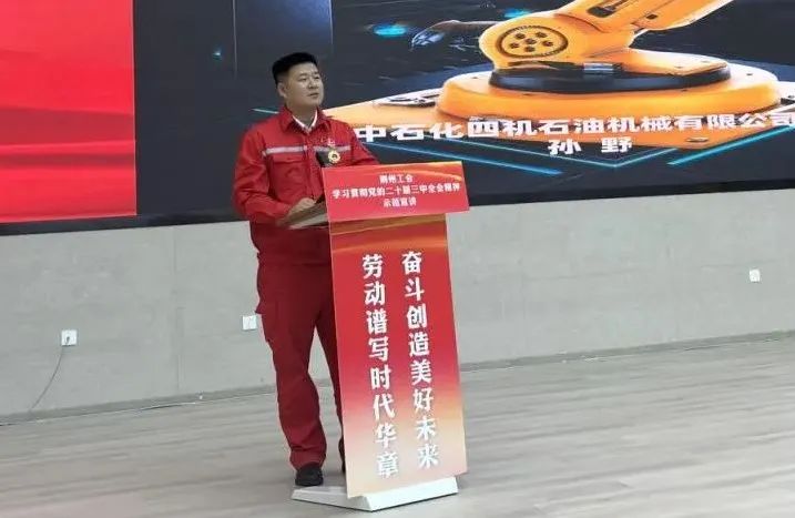 全國勞動模范、中石化四機石油機械有限公司主任技師孫野,這位年輕的技術(shù)能手,在他堅定的目光和自信的笑容中,分享了自己如何帶領(lǐng)團隊攻克難關(guān),成功研發(fā)出世界首創(chuàng)175Mpa超高壓活動彎頭的故事。“我們要牢記習(xí)近平總書記的殷殷囑托,爭做有理想、敢擔(dān)當(dāng)、能吃苦、肯奮斗的新時代青年,拿出‘敢叫日月?lián)Q新天’的萬丈豪情,朝著夢想努力奮斗。”擲地有聲的話語引得現(xiàn)場掌聲如潮。