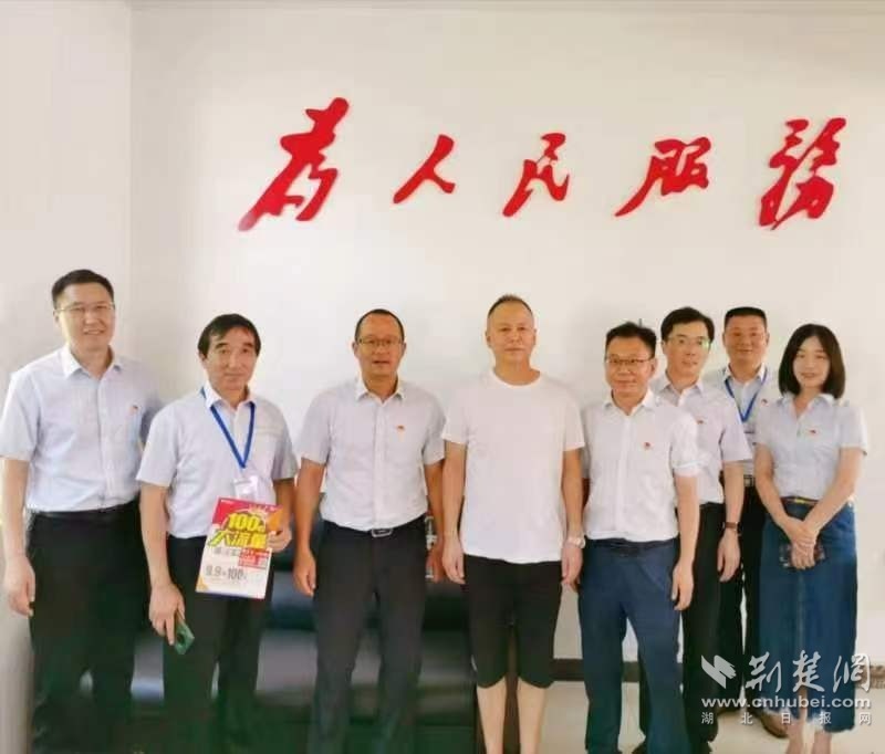 周愛國(左四)與來長周村考察的孝感市電信公司一行合影。