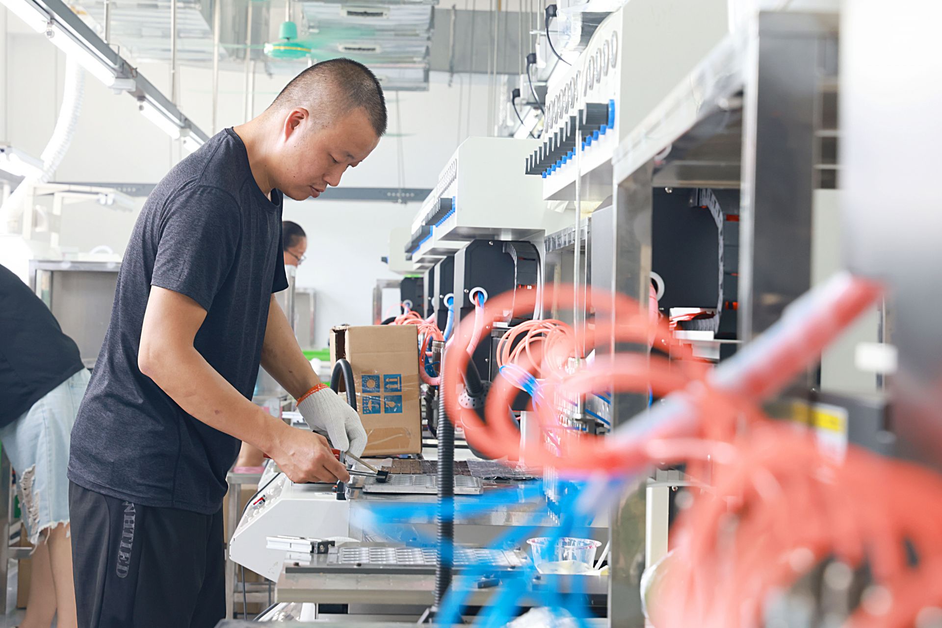“我們今年新增了滴膠機12臺,自動烤箱8臺,硫化機8臺,新設備運行以來,每天的產(chǎn)量可以達2萬多個(件)?!痹摴竟枘z布生產(chǎn)主管余海洋說,相比傳統(tǒng)的手工作業(yè),這批新設備上線后,他們的生產(chǎn)效率大幅提升,產(chǎn)能實現(xiàn)翻番,產(chǎn)品品質也得到了極大的保證。