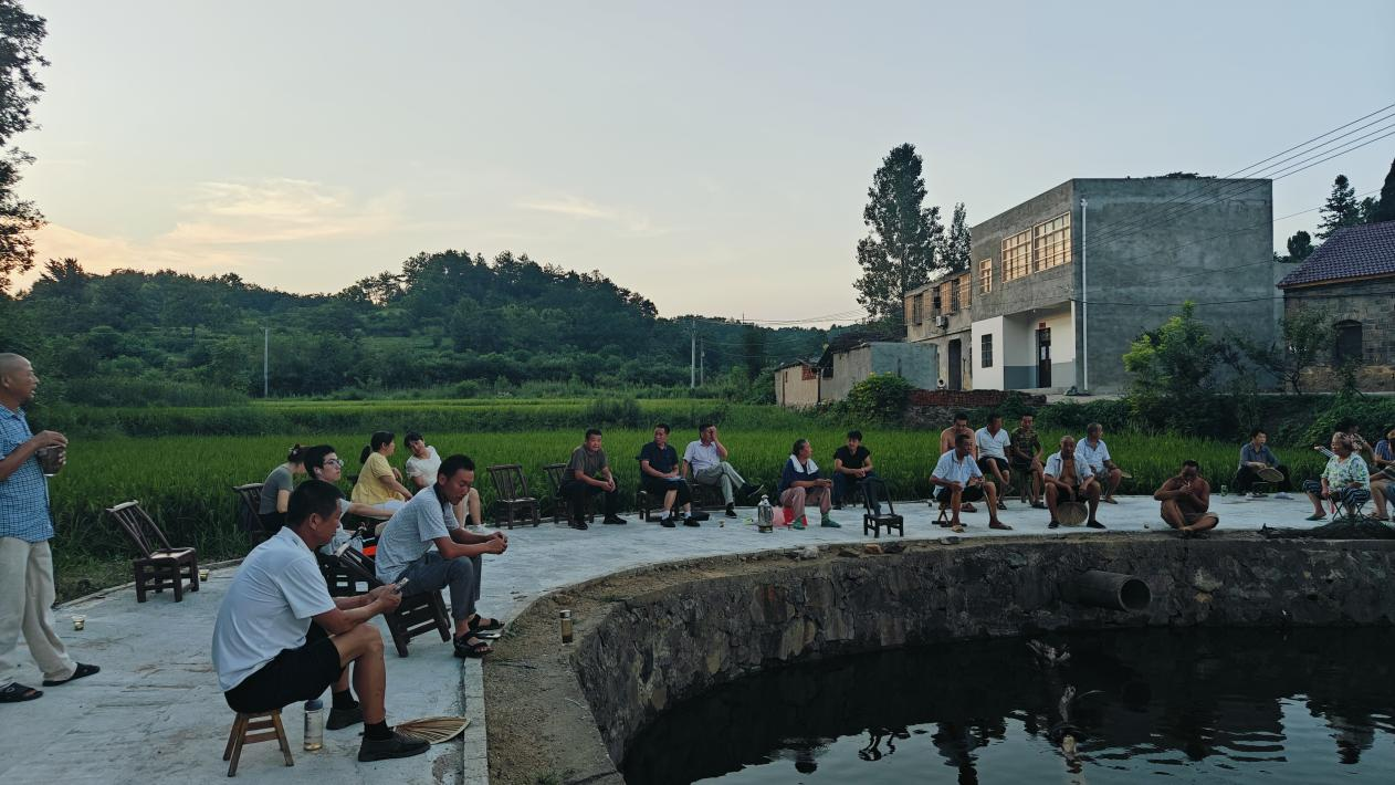 遇事大家議、決策大家定、有事大家干,大悟縣彭店鄉(xiāng)青山村皂角樹灣當家塘東頭,一場“村灣夜話”聚起了人氣。