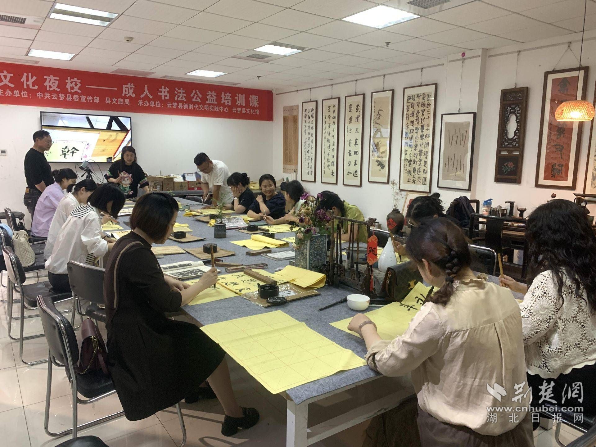 文化夜校里不少市民前來學(xué)習(xí)書法。