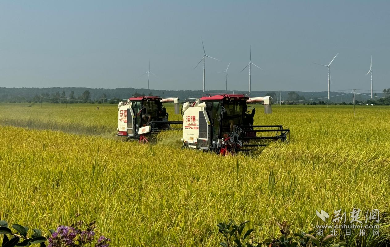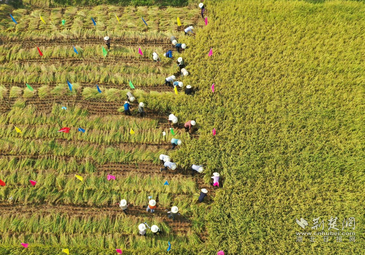 田店鎮(zhèn)暢馬村水稻收割接力賽現(xiàn)場。李夢婷 攝