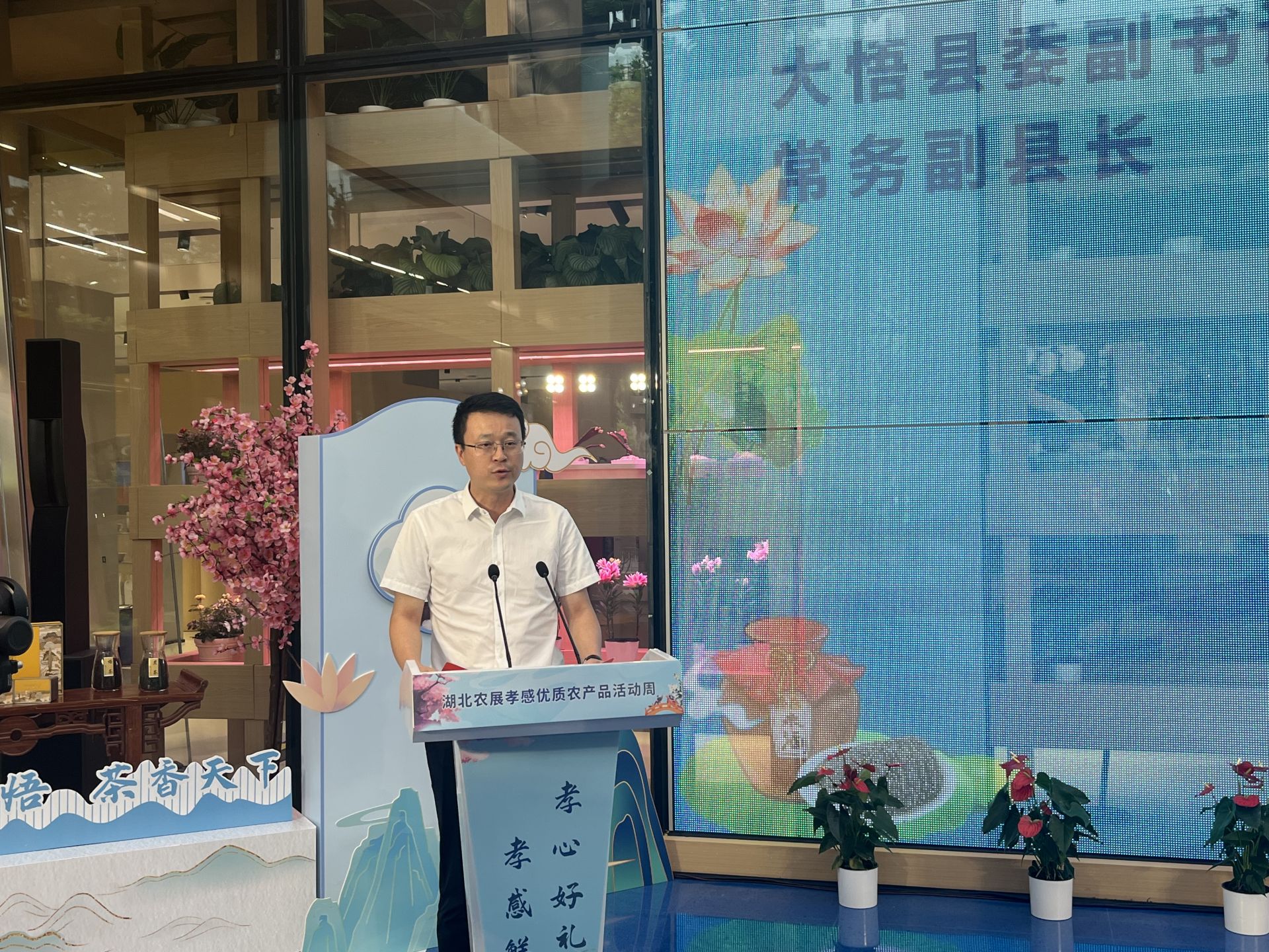 本次活動由湖北省農(nóng)業(yè)農(nóng)村廳、孝感市人民政府主辦,大悟縣人民政府、大悟縣委宣傳部、大悟縣農(nóng)業(yè)農(nóng)村局、大悟縣文化和旅游局、大悟縣商務(wù)局、大悟縣融媒體中心共同承辦。湖北省農(nóng)業(yè)農(nóng)村廳副廳級領(lǐng)導(dǎo)李勝強(qiáng)、湖北省農(nóng)業(yè)農(nóng)村廳二級巡視員張純軍、孝感市農(nóng)業(yè)農(nóng)村局黨組成員、副局長樂華章,孝感市農(nóng)村經(jīng)濟(jì)經(jīng)營管理局局長馮志明,大悟縣委副書記、縣委政法委書記、常務(wù)副縣長文凡,大悟縣人民政府副縣長明娟等同志出席活動。