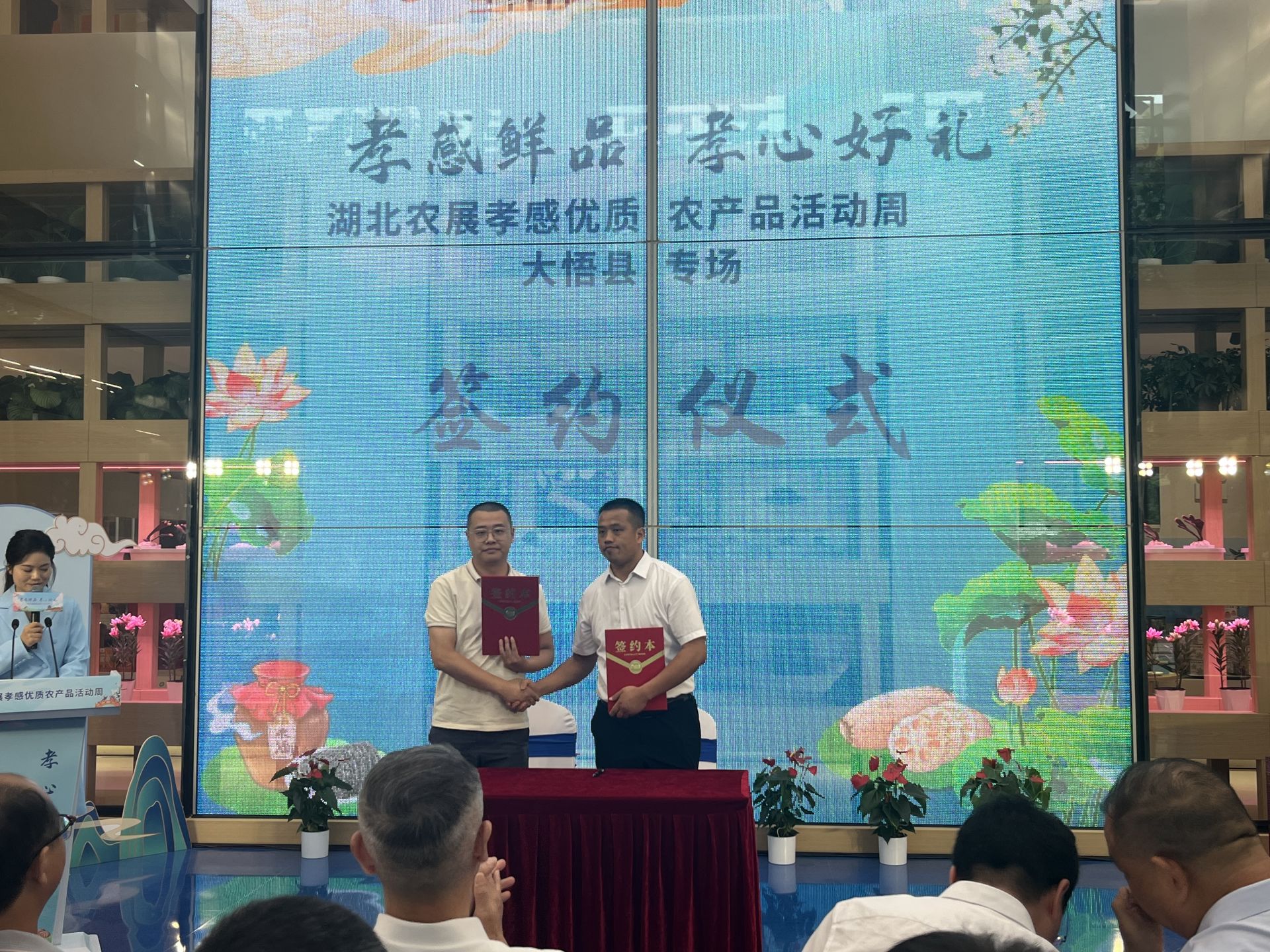 荊楚網(wǎng)(湖北日報網(wǎng))訊(通訊員 易榮波、李怡、徐航)紅秀大悟,茶香天下。8月31日,湖北農(nóng)展孝感優(yōu)質(zhì)農(nóng)產(chǎn)品活動周大悟縣專場推介活動在湖北省優(yōu)質(zhì)農(nóng)產(chǎn)品展銷中心舉行。22家大悟縣農(nóng)業(yè)龍頭企業(yè)攜80余種優(yōu)質(zhì)農(nóng)產(chǎn)品走進(jìn)江城武漢,3家農(nóng)業(yè)企業(yè)與采購商現(xiàn)場簽約,通過精心設(shè)置優(yōu)質(zhì)農(nóng)產(chǎn)品展示區(qū)、品鑒區(qū),文藝演出、茶藝表演、網(wǎng)絡(luò)達(dá)人直播帶貨等形式,全方位展示大悟本地優(yōu)質(zhì)農(nóng)產(chǎn)品,不少“大悟味道”受到熱捧,在場市民和游客紛紛駐足、品鑒購買。