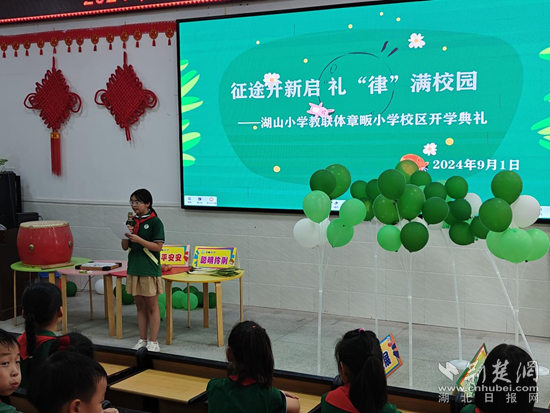 湖山小學(xué)教聯(lián)體章畈小學(xué)校區(qū),師生們齊聚學(xué)校報(bào)告廳,舉行“征途開新啟,禮“律”滿校園”為主題的開學(xué)典禮。
