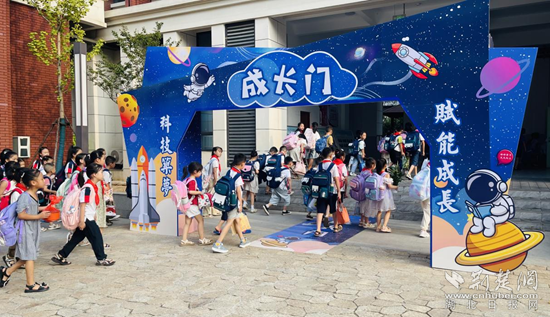 在黃金山第四小學(xué)教聯(lián)體本部校區(qū),孩子們正歡快地路過成長門。他們臉上洋溢著對未來的憧憬,小小的身影充滿著希望。