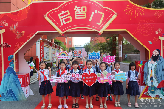 朱砂啟智、摸果蔬、擊鼓明志、過啟智門……開發(fā)區(qū)·鐵山區(qū)黃金山實(shí)驗(yàn)小學(xué)舉行一年級新生入學(xué)儀式。120名一年級小學(xué)生,在滿滿的儀式感中開啟六年的小學(xué)生活。