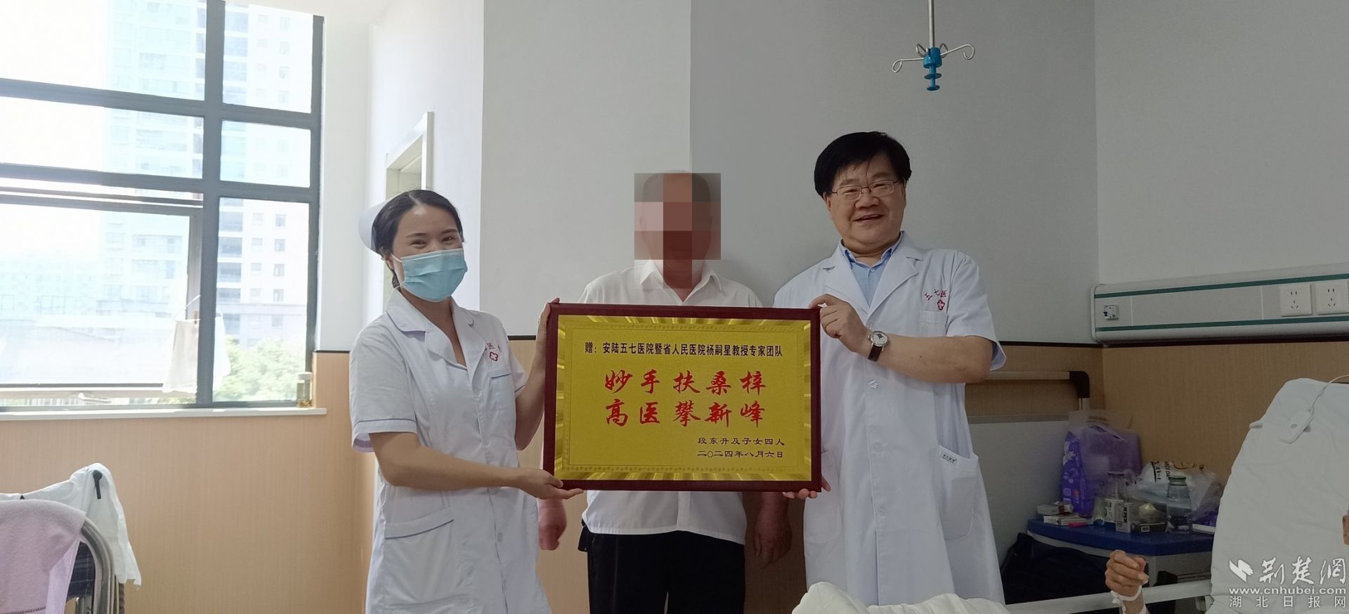 術(shù)后,段爺爺恢復(fù)良好,沒有出現(xiàn)任何并發(fā)癥,排尿功能得到顯著改善。出院時,段爺爺及其子女特地贈送牌匾給楊嗣星教授及安陸五七醫(yī)院,以此表達(dá)他們對醫(yī)療團(tuán)隊精湛醫(yī)術(shù)與貼心關(guān)懷的感激之情。