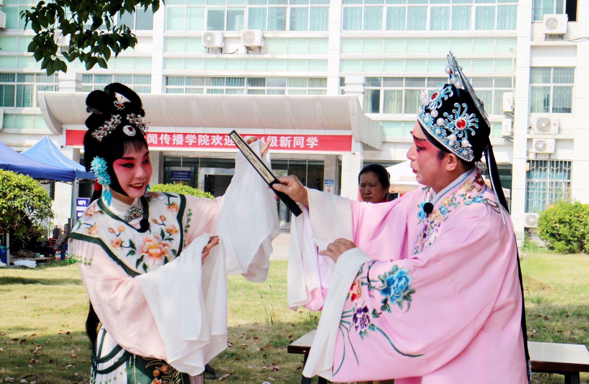 荊楚網(wǎng)(湖北日報網(wǎng))訊(通訊員程鑫鑫)“哇!這就是楚劇嗎?我只是聽過《梁山伯與祝英臺》,但是這也是第一次現(xiàn)場看,這也太有韻味了吧!”一群新生及其家長紛紛駐足觀看、拍照。9月7日,是湖北工程學院新生報到的第一天,在文學與新聞傳播學院迎新處,正舉辦著“醉美澴川,非遺孝感”迎國慶非物質(zhì)文化遺產(chǎn)進校園普及周活動。
