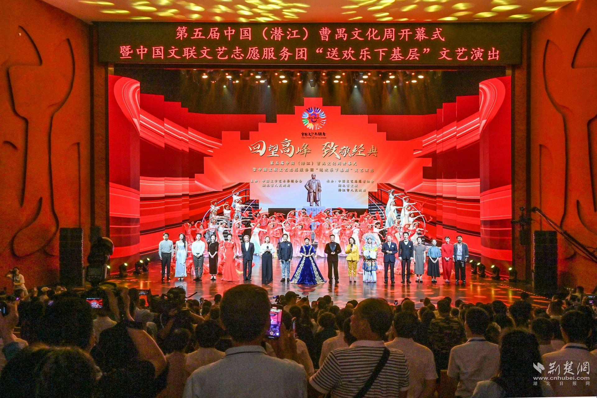 本屆曹禺文化周開幕式暨中國文聯(lián)文藝志愿服務(wù)團“送歡樂下基層”文藝演出活動由劉威、侯天來、哈斯高娃、徐濤、閻維文、殷秀梅等一眾知名藝術(shù)家領(lǐng)銜,分《故人,戲劇里的曹禺》和《故鄉(xiāng),奮進中的潛江》上下兩個篇章,精彩演繹了曹禺先生的經(jīng)典劇作片段和諸多文藝節(jié)目,回顧了曹禺先生與故鄉(xiāng)潛江的不懈情緣,展現(xiàn)了曹禺先生經(jīng)典劇作的藝術(shù)造詣和文化內(nèi)涵,給潛江市民及全國各直播平臺的觀眾帶來了一場視聽盛宴?,F(xiàn)場觀眾掌聲雷動,經(jīng)久不息。