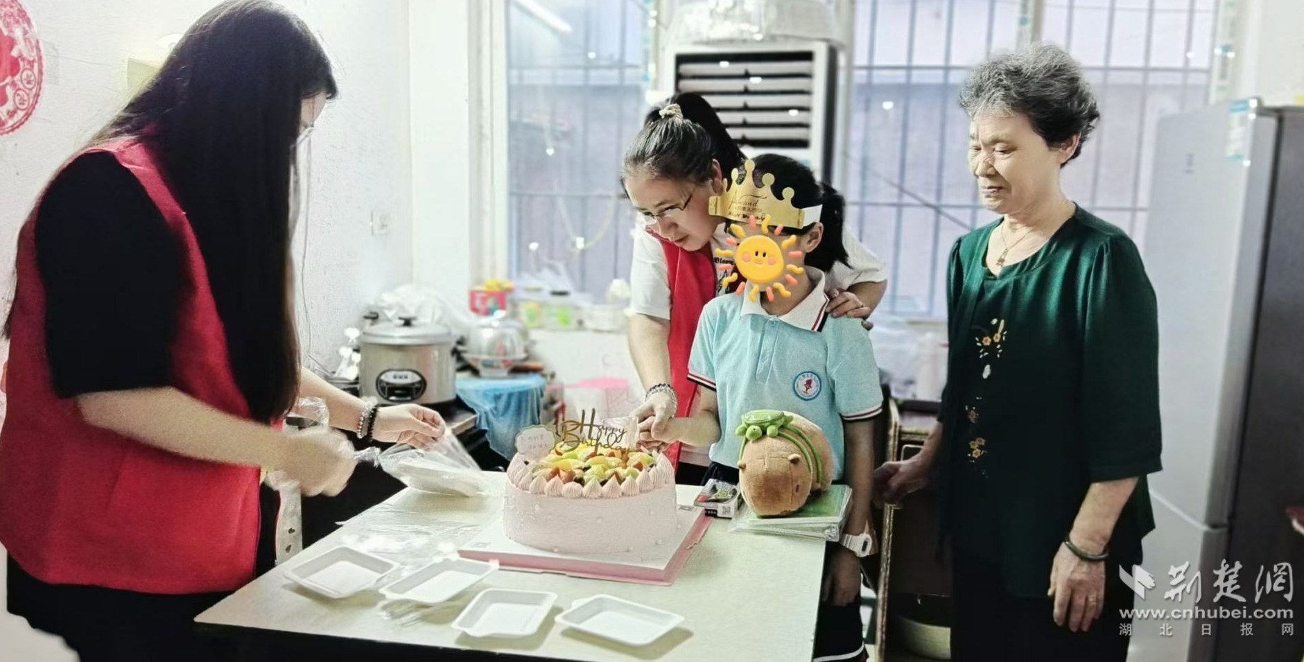 其中,入戶為孩子過生日的場景尤為感人。當“愛心媽媽”們手捧生日蛋糕、帶著精美的禮物走進家門時,霏霏略顯黯淡的眼睛瞬間被驚喜與期待點亮。隨著生日祝福歌聲響起,生日蠟燭被點燃,那一刻,彌補了孩子因家庭特殊狀況而缺失的親情關懷。