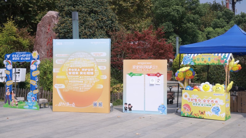 在活動現(xiàn)場,馨蓓安設(shè)置了包含兒童居家安全、食品安全、校園安全、乘車安全、消防安全、防溺水、放拐騙等多方面安全知識點(diǎn)的超大安全提示背景板和精美打卡框架,吸引游客拍照打卡的同時,傳播兒童安全知識。