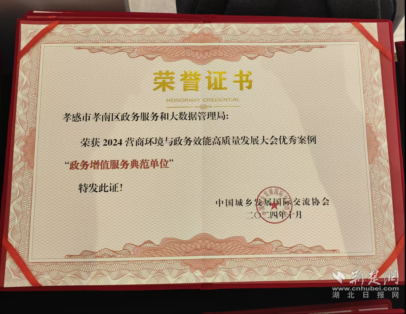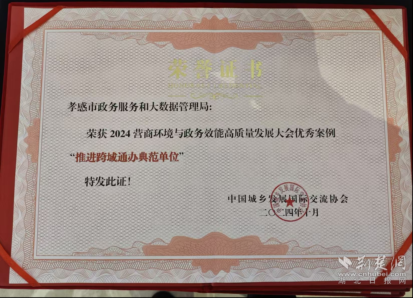 荊楚網(wǎng)(湖北日?qǐng)?bào)網(wǎng))訊(通訊員 葉進(jìn)軍、戰(zhàn)婷婷)10月17日,2024營商環(huán)境與政務(wù)效能高質(zhì)量發(fā)展大會(huì)在北京市通州區(qū)舉行。經(jīng)組委會(huì)推薦、專家評(píng)審委員會(huì)評(píng)審,《孝感市“跨域通辦”新模式促進(jìn)政務(wù)服務(wù)效能再提升》《深化“一窗通辦”改革 助力“高效辦成一件事”》《做實(shí)惠企政策推送 推動(dòng)營商環(huán)境優(yōu)化》3個(gè)案例入圍優(yōu)秀案例,孝感市獲評(píng)“推進(jìn)跨域通辦典范單位”“政務(wù)增值服務(wù)典范單位”“區(qū)域經(jīng)濟(jì)發(fā)展創(chuàng)新單位”3項(xiàng)獎(jiǎng)項(xiàng)。