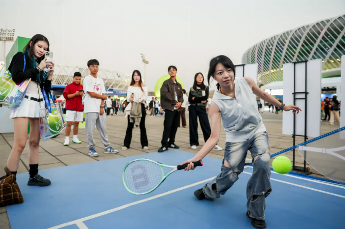 還沒打卡完,球迷就被躁動的音樂或是吶喊聲吸引,原來是“LOVE武網(wǎng)”大看臺的精彩瞬間。每天從早到晚,都有“熱活秀”,樂隊表演、Coser巡游、街舞、多巴胺時裝秀輪番上演,還有“武網(wǎng)有禮”現(xiàn)場抽獎和趣味競猜互動大禮包。