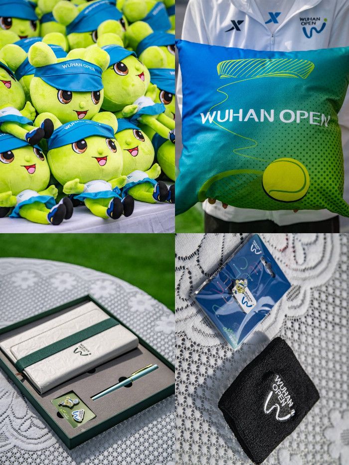 在“購精彩”市集,運動裝備、紀念品及特色文創(chuàng)等引來眾人搶購。印花浴巾、主題抱枕、限定T恤等等精致時尚,武網(wǎng)吉祥物江江的玩偶、徽章更是成為人氣單品。