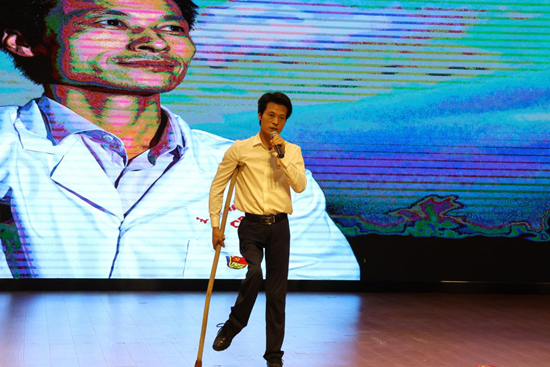 杜詠梅的《牽手》,講述了一位教師與一名自閉癥兒童的故事?!拔釃f疆以仁愛,千年不滅的信仰......”現(xiàn)場(chǎng)觀眾應(yīng)節(jié)合拍,氣氛達(dá)到了高潮。