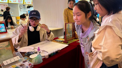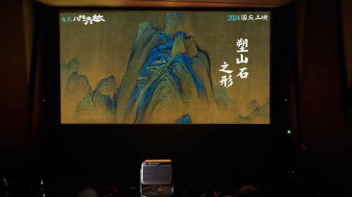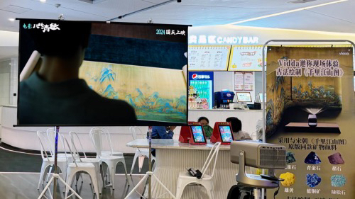 活動(dòng)現(xiàn)場(chǎng),海信旗下的潮牌Vidda不僅給觀眾展示了人類非物質(zhì)文化遺產(chǎn)云錦版《千里江山圖》,還有青年畫家用古法繪制《千里江山圖》,工作人員還將云錦和國畫上疊嶂層巒的青綠山水,還有《只此青綠》預(yù)告片,通過Vidda C2 Ultra三色激光投影投放在了大屏上,讓觀眾可以近距離看清如夢(mèng)如幻的中華色彩之美。