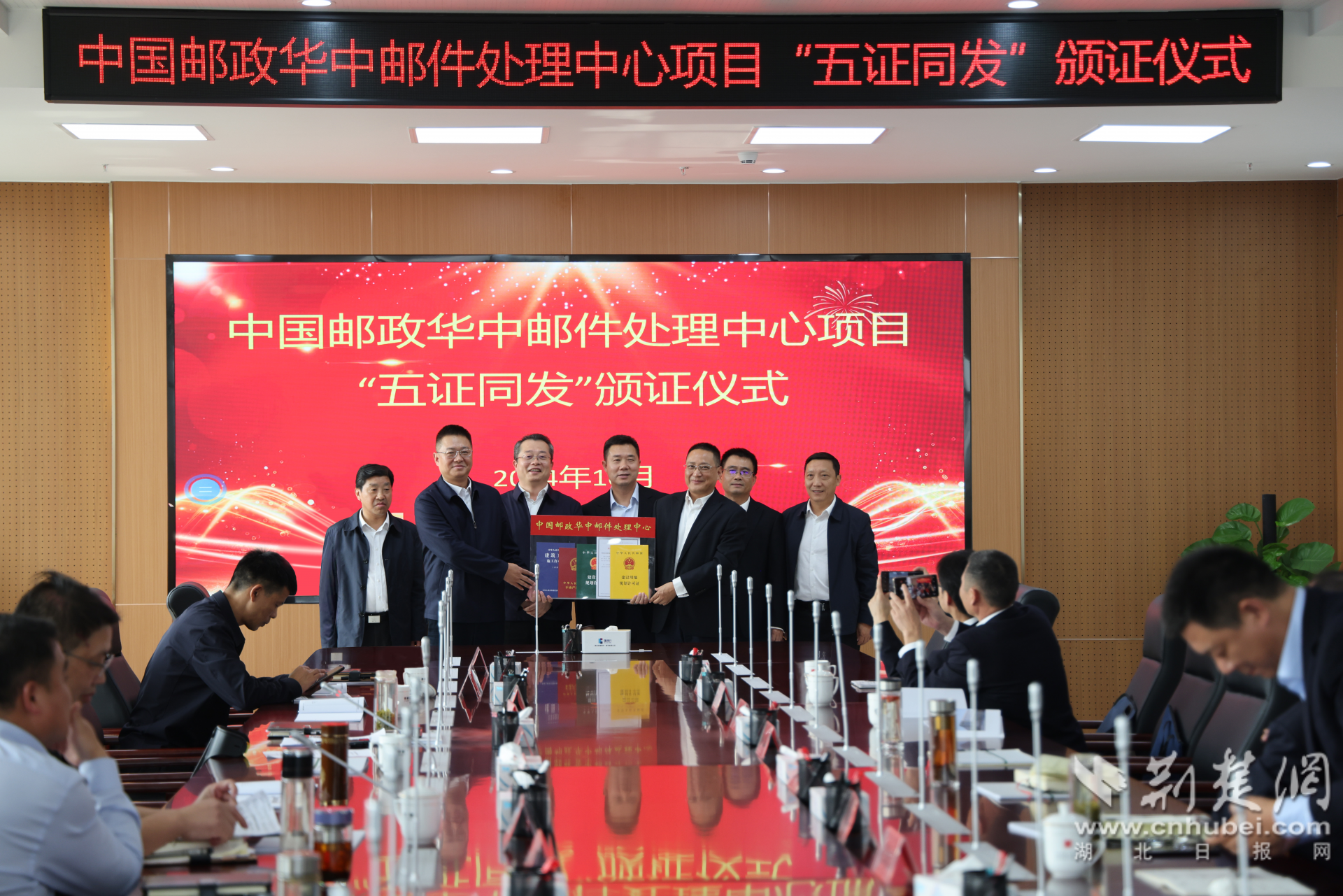荊楚網(wǎng)(湖北日?qǐng)?bào)網(wǎng))訊(通訊員 肖文丹、饒清雄)10月30日,中國郵政華中郵件處理中心項(xiàng)目“五證同發(fā)”活動(dòng)在中國郵政孝感分公司舉行。該項(xiàng)目也是繼6月18日孝南區(qū)頒發(fā)全省首批“一網(wǎng)集成”辦理“五證”后的又一重點(diǎn)項(xiàng)目。