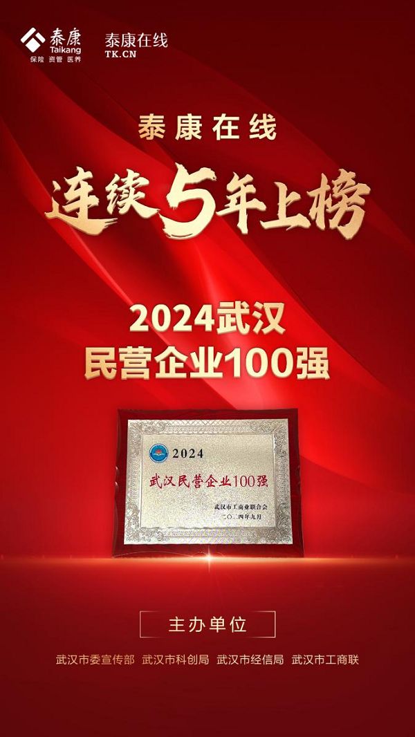 10月31日,在武漢市委統(tǒng)戰(zhàn)部指導(dǎo)下,武漢市委宣傳部、武漢市科創(chuàng)局、武漢市經(jīng)信局、武漢市工商聯(lián)共同發(fā)布“2024武漢民營企業(yè)100強榜單”,泰康在線憑借在互聯(lián)網(wǎng)保險領(lǐng)域的卓越表現(xiàn)和對武漢經(jīng)濟發(fā)展的突出貢獻連續(xù)5年榮譽登榜。該榜單不僅是對武漢民營企業(yè)綜合實力的全面檢閱,也是對相關(guān)企業(yè)在科技創(chuàng)新、產(chǎn)業(yè)升級、高質(zhì)量發(fā)展等維度的高度肯定。