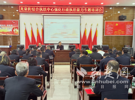 荊楚網(wǎng)(湖北日?qǐng)?bào)網(wǎng))訊(通訊員劉昌?。檫M(jìn)一步提高龍泉街綜合執(zhí)法人員素質(zhì),有效提升執(zhí)法人員業(yè)務(wù)能力和法治素養(yǎng),2024年11月7日,武漢市龍泉街綜合執(zhí)法中心在福利村村委大會(huì)堂舉辦了強(qiáng)化行政執(zhí)法能力專題培訓(xùn)會(huì),對(duì)全街綜合行政執(zhí)法人員進(jìn)行2024年度第一輪執(zhí)法實(shí)務(wù)集中培訓(xùn),街道分管領(lǐng)導(dǎo)瞿學(xué)軍、公管辦主任吳濤、綜合執(zhí)法中心負(fù)責(zé)人徐飛、綜合執(zhí)法中心全體人員、拆遷辦全體人員、第三方人員,共計(jì)107人參訓(xùn)。