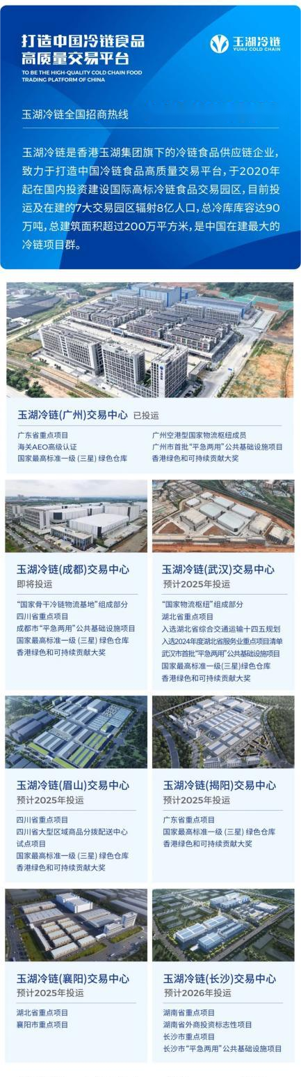 此次論壇圍繞全球經(jīng)濟的新挑戰(zhàn),聚焦打造中歐開放合作新樞紐、貿(mào)易投資新高地、交流互鑒新窗口,除開幕式活動外,還圍繞綠色低碳、數(shù)字經(jīng)濟等新領(lǐng)域新賽道,舉辦十余場專題活動。玉湖冷鏈自2020年開啟全國戰(zhàn)略,在推動區(qū)域進出口貿(mào)易發(fā)展、著力綠色發(fā)展、數(shù)字化轉(zhuǎn)型等方面都有著深入實踐,并取得了顯著成果。玉湖冷鏈副總裁、武漢公司董事長韋佳在接受湖北日報采訪時介紹,玉湖冷鏈在全國投運及在建的7大交易園區(qū)可輻射8億人口,總冷庫庫容達90萬噸,總建筑面積超過200萬平方米,以其數(shù)字化供應(yīng)鏈管理和全鏈服務(wù)能力,聚集了上下游產(chǎn)業(yè),有效促進了園區(qū)所在地的進出口貿(mào)易增長。其中,湖北省重點項目玉湖冷鏈武漢項目作為華中地區(qū)的重要布局之一,是武漢商貿(mào)服務(wù)型國家物流樞紐重要組成部分,該項目占地312畝,總庫容高達21.4萬噸,預(yù)計于2025年投運。該項目引入國際先進的冷鏈技術(shù)和創(chuàng)新的供應(yīng)鏈服務(wù),投產(chǎn)后將吸引國內(nèi)外食品貿(mào)易領(lǐng)袖級企業(yè)和貿(mào)易商聚集,促進海外優(yōu)質(zhì)食品進入華中及全國市場,同時,推動武漢融入國際市場,強化其在全球食品貿(mào)易網(wǎng)絡(luò)中的核心地位,并鞏固武漢“國家商貿(mào)物流中心”的地位。通過暢通國內(nèi)供需大循環(huán),玉湖冷鏈武漢項目將有效銜接國內(nèi)外市場,為湖北經(jīng)貿(mào)發(fā)展注入強勁動力。