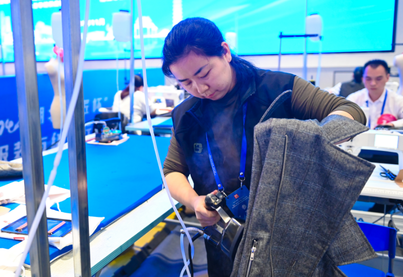 而在縫紉工項(xiàng)目賽區(qū),縫紉機(jī)的“噠噠”聲此起彼伏,仿佛是一首激昂的交響曲。選手們熟練地操作著機(jī)器,將一片片布料拼接成精美的作品。他們的眼神專注而堅(jiān)定,手指靈活地穿梭于布料之間,展現(xiàn)出了高超的縫紉技巧和豐富的經(jīng)驗(yàn)。
