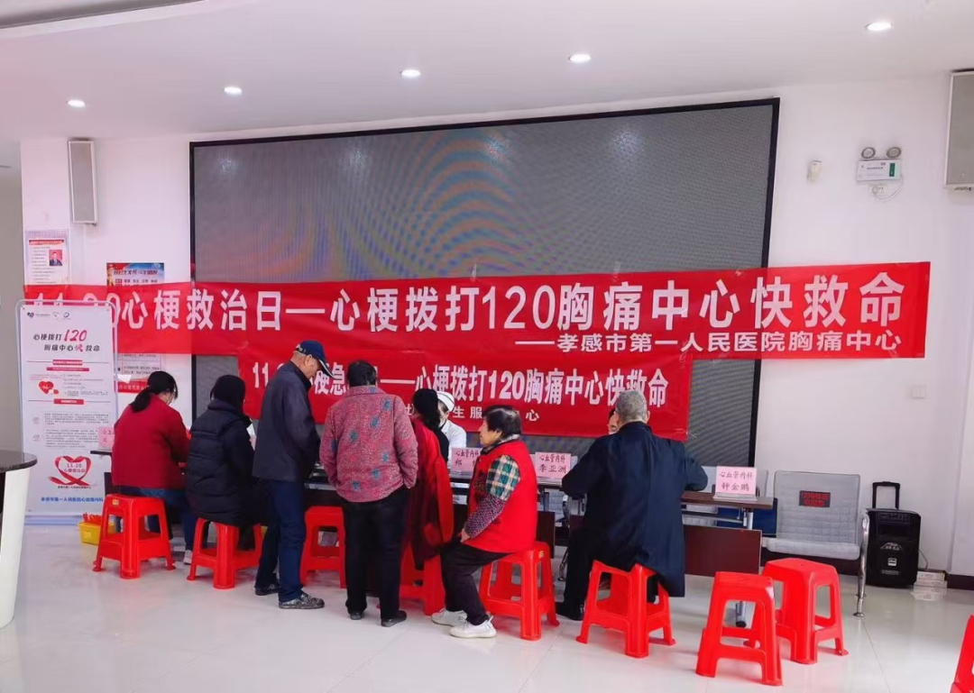當(dāng)天上午,孝感市第一人民醫(yī)院心血管內(nèi)科為主導(dǎo)的金心團(tuán)隊走進(jìn)沙溝社區(qū),開展“1120心梗救治日”義診宣教活動,通過多種方式向市民普及心梗的救治常識,倡導(dǎo)健康生活方式,提升廣大市民的急救意識。