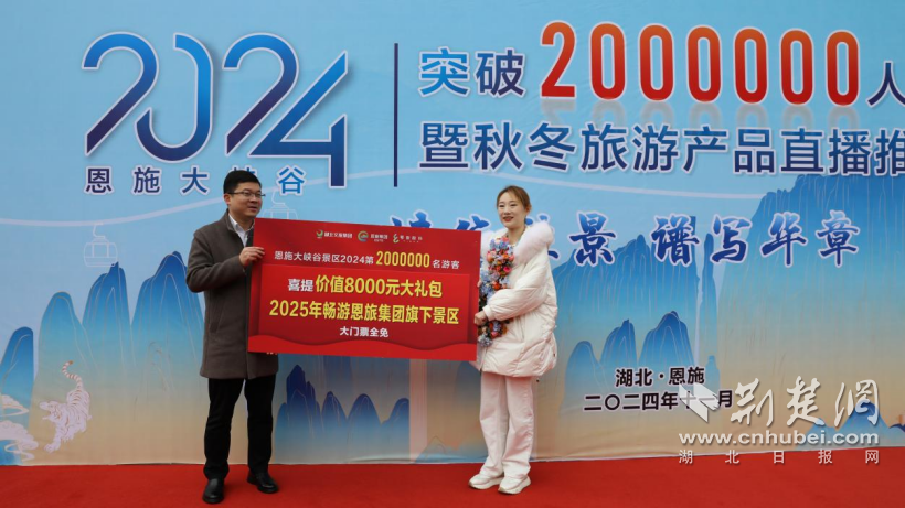 “真的非常榮幸能夠成為恩施大峽谷景區(qū)今年第200萬位游客!來恩施大峽谷很開心,也希望更多的朋友來恩施大峽谷游玩!”李女士難掩激動地表示。