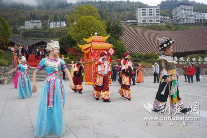 當(dāng)天上午,恩施大峽谷景區(qū),“土司老爺”身著盛裝,土家幺妹兒精心打扮,一起翹首以待迎貴客。隨著檢票閘機(jī)播報出“您是恩施大峽谷第200萬游客”,頓時鑼鼓齊鳴,禮炮漫天。這是恩施大峽谷景區(qū)開園以來,首次年度游客突破200萬。