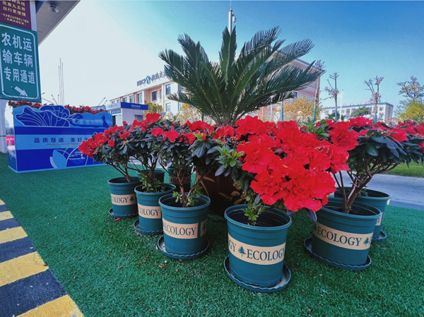 綠化環(huán)境“一鍵美顏”。綠葉紅花兩相映,風(fēng)景沿線如畫(huà)中。從萬(wàn)全收費(fèi)站上下站,只見(jiàn)出入口周邊綠化樹(shù)木枝葉茂盛,安全島頭鮮花綻放,紅與綠交織成趣,生機(jī)盎然。今年,萬(wàn)全管理所不僅將收費(fèi)站周邊的閑置用地統(tǒng)一進(jìn)行綠化,鋪上草皮、種上桂樹(shù),還選用了三角梅、月季、滿天星等花草植物在安全島頭搭建簡(jiǎn)易小景,形成“四季常綠、三季有花”的道路景觀。同時(shí),在不影響通行安全的情況下,管理所在立柱之間掛上了與綠葉紅花交相映襯的七彩風(fēng)車(chē),并在花箱中安裝了靈動(dòng)感十足的戶外水母燈,形成了“平時(shí)有綠、節(jié)日有花、白天有彩、夜晚有光”的溫馨景象,用“心”煥“新”,點(diǎn)亮司乘美好出行路。