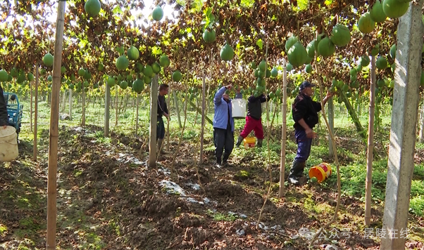 在公安縣獅子口鎮(zhèn)橫堤子村的瓜蔞種植基地一個個飽滿圓潤的瓜蔞從藤蔓上垂下來村民們穿梭其中忙著采摘。