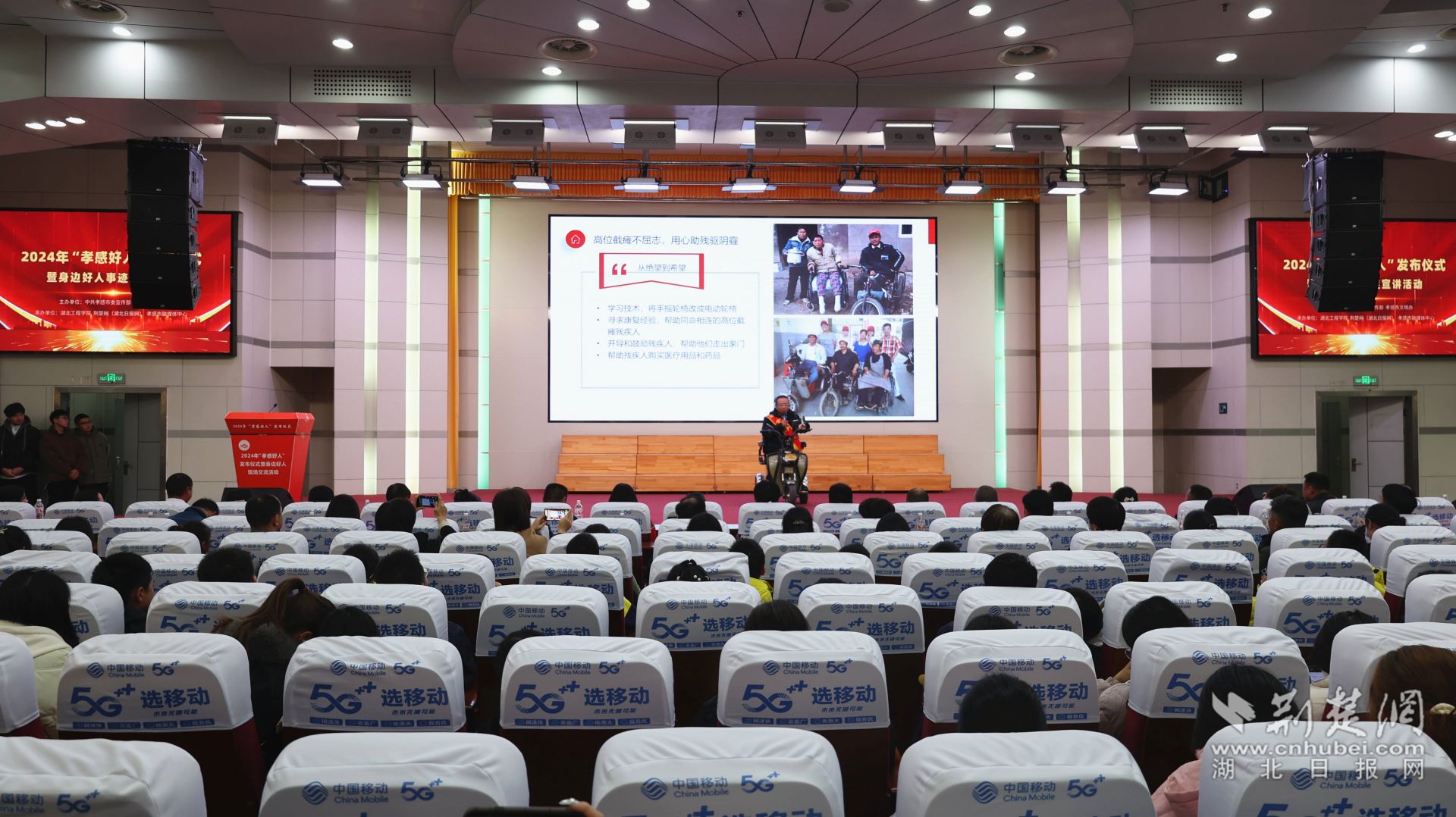 “孝感市道德模范”余麗以《生命的“拐杖”》為題作事跡宣講。
