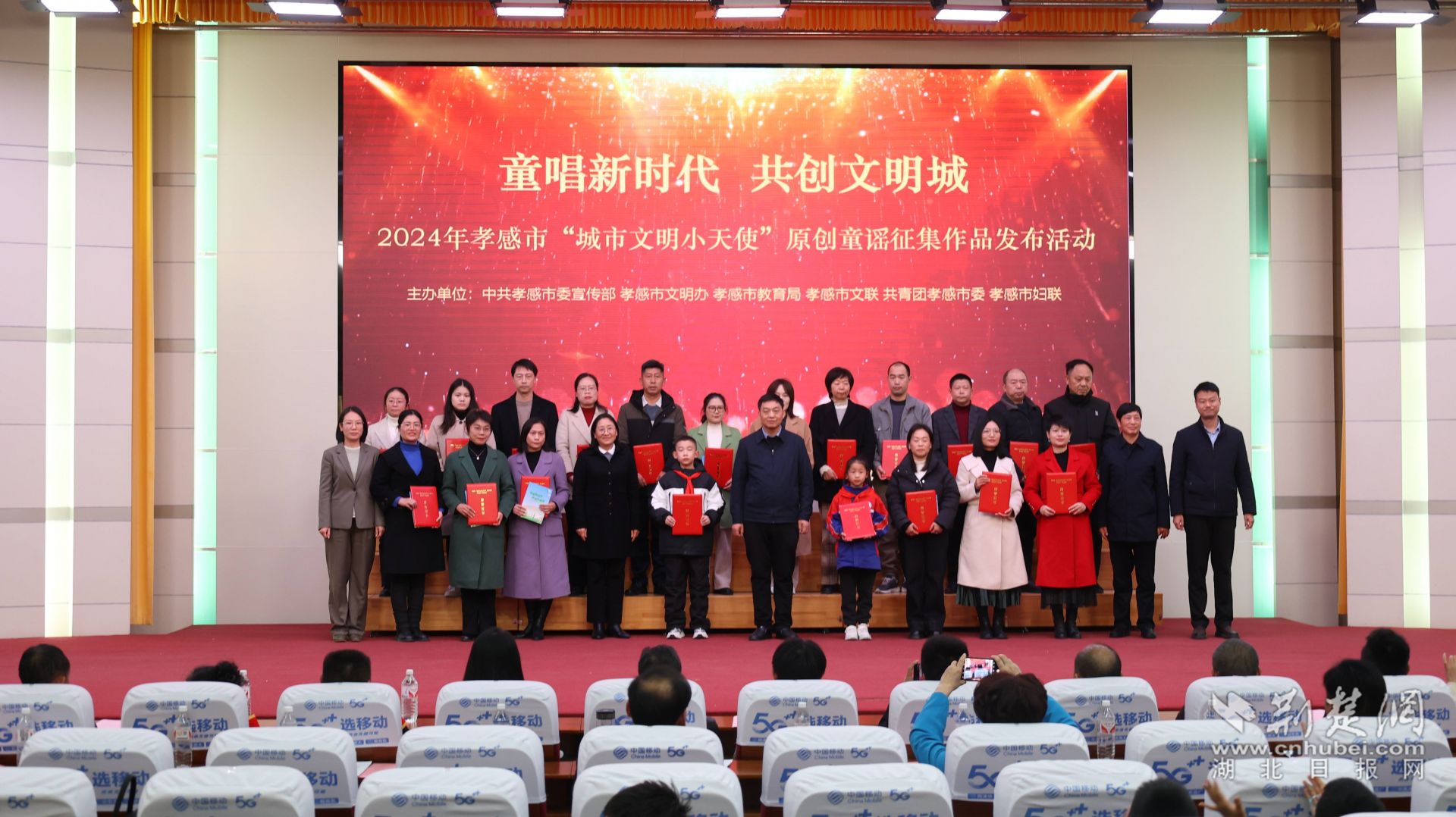 同時,同步舉行了2024年孝感市“城市文明小天使”原創(chuàng)童謠征集作品發(fā)布活動,并為獲獎作者、單位頒發(fā)了獎項。