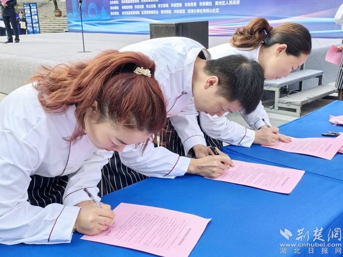 活動現(xiàn)場,黃岡市消費者委員會、黃岡市市場監(jiān)管局向廣大消費者、經(jīng)營者、行業(yè)協(xié)會和政府職能部門發(fā)布了放心消費倡議,公布了參與學(xué)生新街放心消費承諾活動的經(jīng)營主體名單。經(jīng)營者代表現(xiàn)場作出放心消費公開承諾,并被授牌學(xué)生新街首批“放心消費承諾單位”。