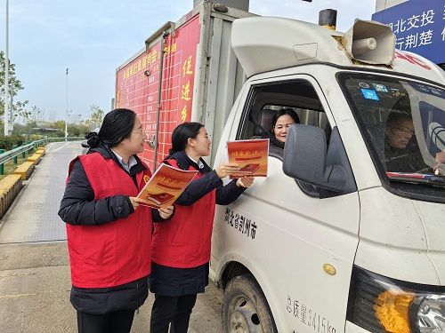 弘揚憲法,與法同行。管理所利用電子宣傳屏滾動播放宣傳憲法標語,設(shè)置咨詢服務(wù)臺,擴大宣傳覆蓋面,“有我”志愿者們對過往的司乘發(fā)放憲法宣傳手冊,解答高速收費政策疑問,將憲法宣傳觸角延伸至過往每一位司乘,不少司乘表示收獲頗豐,糾正過往對高速收費規(guī)則、超載治理等方面誤解,增強依法依規(guī)出行意識。