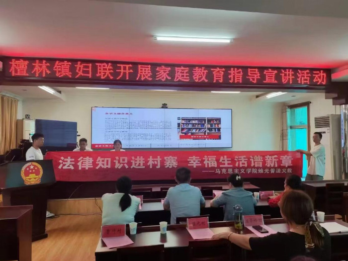 實(shí)踐活動(dòng)漸近尾聲,臨行之際,鎮(zhèn)團(tuán)委書(shū)記邀請(qǐng)他為全鎮(zhèn)村干部及其家屬普及法律知識(shí)。猶記得上臺(tái)做自我介紹時(shí),聲音因緊張而微微顫抖,可當(dāng)目光觸及臺(tái)下村民眼中對(duì)法律知識(shí)那熾熱的渴望時(shí),一股強(qiáng)烈的使命感油然而生。那一刻,他下定決心,一定要讓法律知識(shí)在這里生根發(fā)芽,讓法治之花絢爛綻放。