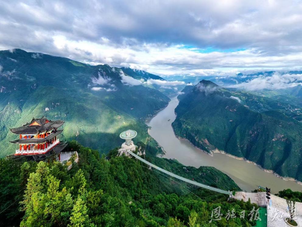 地處“巫峽云巔”的巫峽口景區(qū),和長江大轉(zhuǎn)拐成為互動(dòng)的風(fēng)景。(譚德魁 攝)