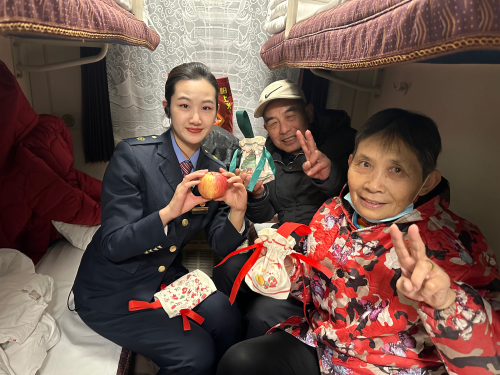 此外,為了增添節(jié)日的氣氛,他們還貼心地準(zhǔn)備了蘋果作為小禮物送給旅客。旅客張奶奶對(duì)這次活動(dòng)給予了積極反饋,表示這是一次特別的出行體驗(yàn),讓她體會(huì)到了旅行的溫暖。