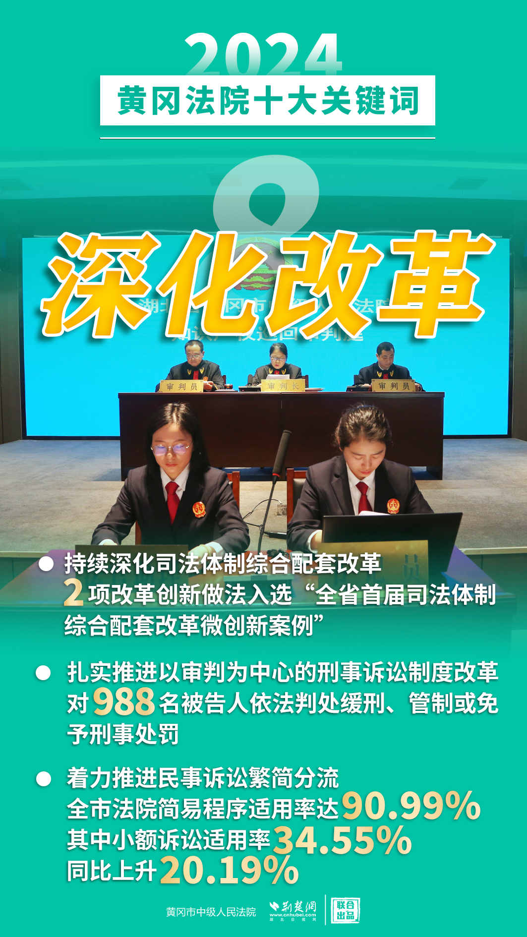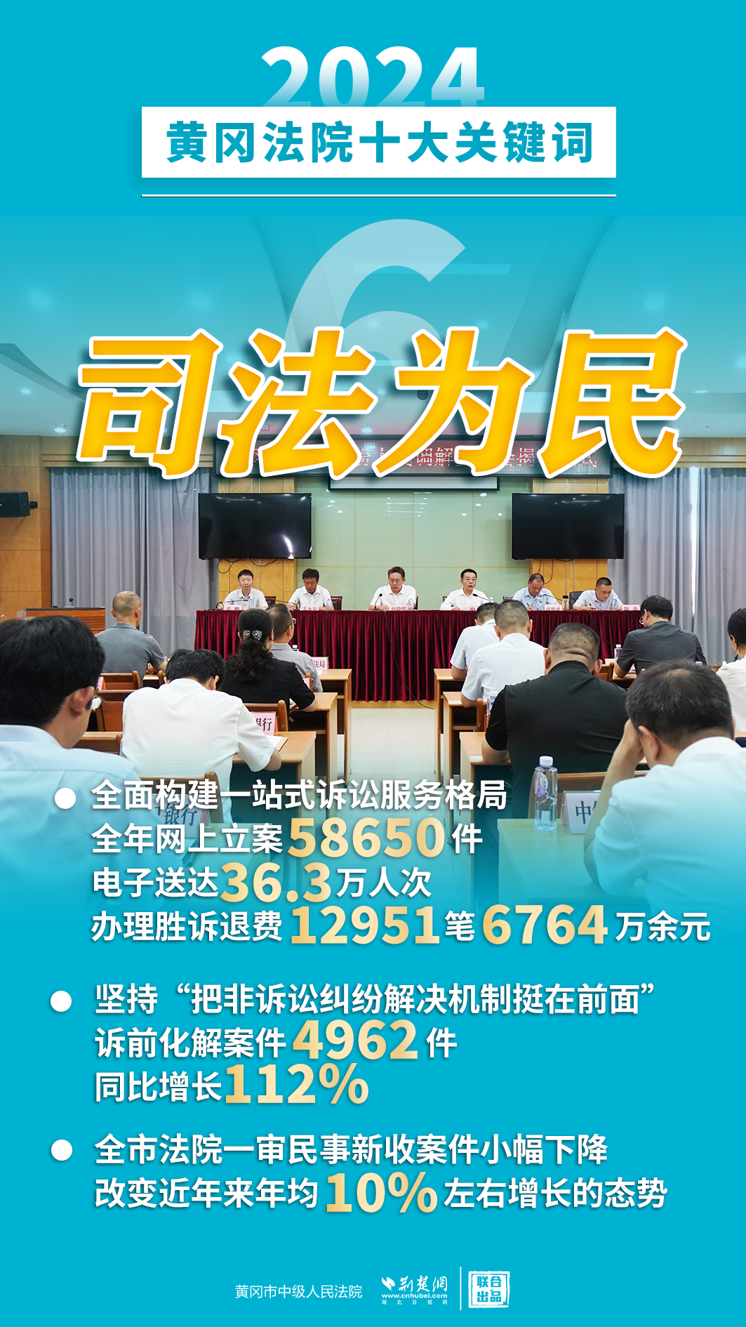 2024年,黃岡法院深入學(xué)習(xí)貫徹黨的二十屆三中全會(huì)精神,認(rèn)真落實(shí)黨中央決策部署和省委、市委工作要求,忠誠履職、擔(dān)當(dāng)作為,著力護(hù)航經(jīng)濟(jì)高質(zhì)量發(fā)展、助推社會(huì)高效能治理、守護(hù)群眾高品質(zhì)生活,各項(xiàng)工作取得新發(fā)展、實(shí)現(xiàn)新突破。