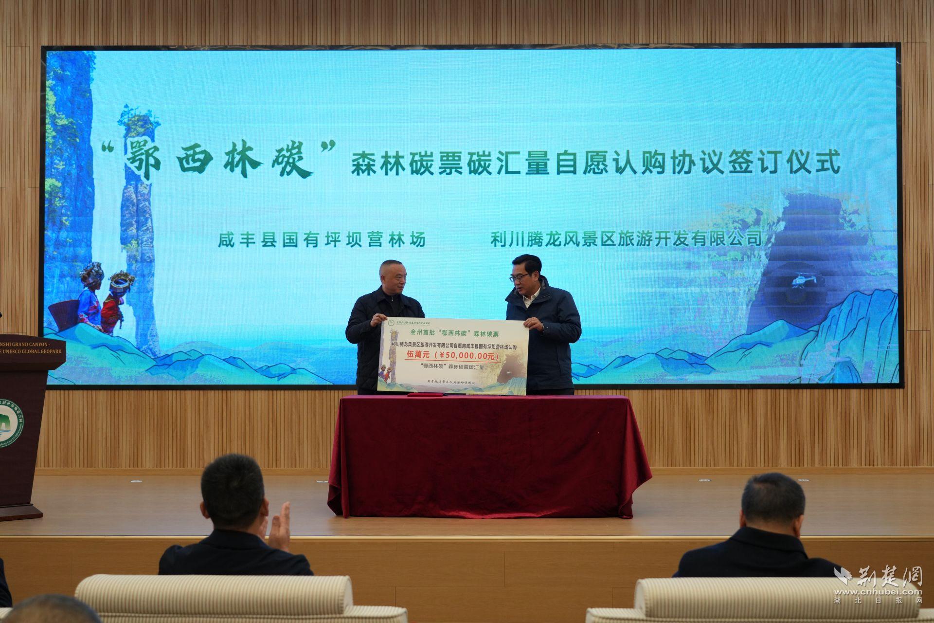 現(xiàn)場,咸豐縣國有坪壩營林場與恩施大峽谷旅游開發(fā)有限公司、利川騰龍風(fēng)景區(qū)旅游開發(fā)有限公司簽訂了“鄂西林碳”森林碳票碳匯量自愿認(rèn)購協(xié)議。兩家企業(yè)首期認(rèn)購的減排量合計(jì)約3000噸,結(jié)合企業(yè)另外開展的節(jié)能減排系列措施,可分別抵消兩家景區(qū)一個(gè)月的人為活動(dòng)碳排放量,當(dāng)月可實(shí)現(xiàn)“零碳景區(qū)”目標(biāo)。