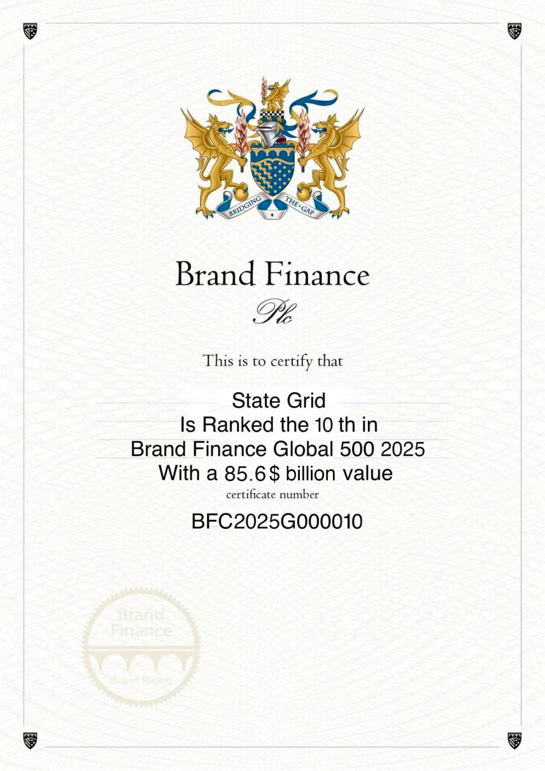 近日,英國品牌金融咨詢公司Brand Finance在瑞士達(dá)沃斯世界經(jīng)濟論壇發(fā)布《2025年全球品牌價值500強》榜單,國家電網(wǎng)品牌價值856.3億美元,同比提升20.4%,排名第10位,首次躋身全球十大品牌,位列入圍中央企業(yè)首位。