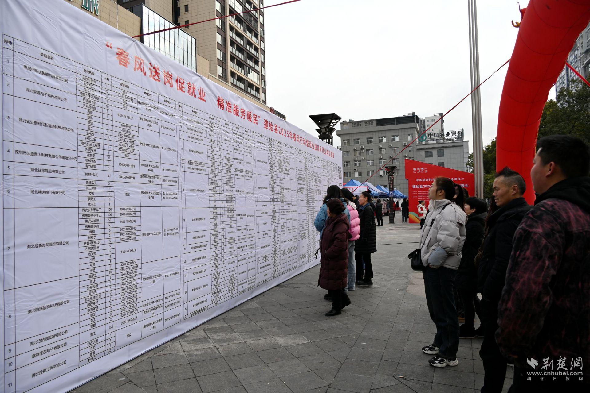 荊楚網(wǎng)(湖北日報(bào)網(wǎng))訊(通訊員向繼武、郭媛媛、高用平)2月7日,建始縣總工會(huì)與縣人社等多部門聯(lián)合開展2025年“春風(fēng)行動(dòng)”專場招聘會(huì),為來自廣東、武漢及建始本土的121家企業(yè)和眾多求職者搭建“雙向奔赴”的橋梁。
