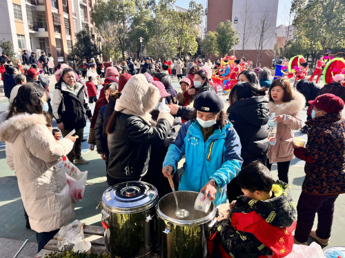 而在另一邊,送湯圓和猜燈謎活動(dòng)同樣進(jìn)行得如火如荼。一排排的燈籠高高掛起,200余條燈謎集知識(shí)性與趣味性為一體,除字謎、成語(yǔ)謎外,還涉及反詐、禁毒、生活常識(shí)、元宵節(jié)民俗等百科知識(shí),吸引了不少居民熱情參與競(jìng)猜。面對(duì)一道道謎題,大家時(shí)而苦思冥想,時(shí)而喜笑顏開(kāi),在一次次謎底揭曉中傳遞文化,分享知識(shí)。同時(shí)社區(qū)工作人員也將煮好的熱氣騰騰的湯圓,送到活動(dòng)現(xiàn)場(chǎng)居民的手中。元宵節(jié)吃湯圓,是中國(guó)長(zhǎng)久以來(lái)的習(xí)俗。大家吃著精心準(zhǔn)備的湯圓,臉上流露出幸福的笑容。