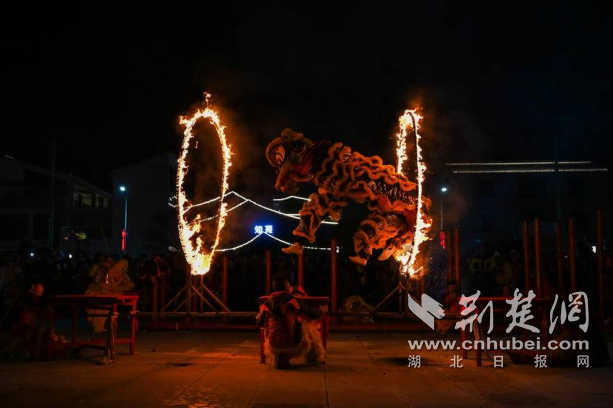 舞獅跳火圈。