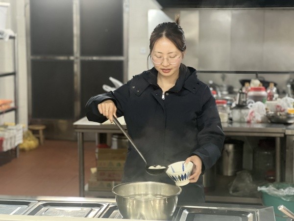 活動伊始,員工們圍坐一團(tuán),燈籠、配件、骨架在手中翻飛,有人細(xì)心撐開燈籠,有人專注裝燈。不一會兒,一個(gè)喜氣洋洋的燈籠就做好了,再綴上穗子,喜慶的節(jié)日氛圍瞬間拉滿。隨后,熱氣騰騰的湯圓出鍋,大家品嘗著甜蜜軟糯的湯圓,分享著生活趣事和工作中的點(diǎn)滴,歡聲笑語回蕩在食堂,員工周鳳芹感慨道:“雖然不能回家過節(jié),但是在這里和大家一起做燈籠、吃湯圓。感覺特別溫暖,就像和家人在一起一樣?!?/p>